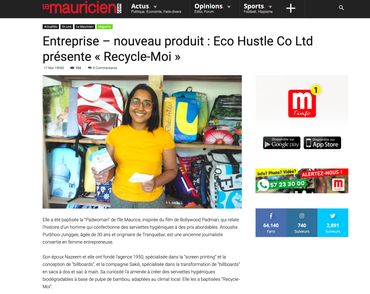 Recycle Moi sanitary napkins are the first natural and 100% biodegradable pads from Mauritius.